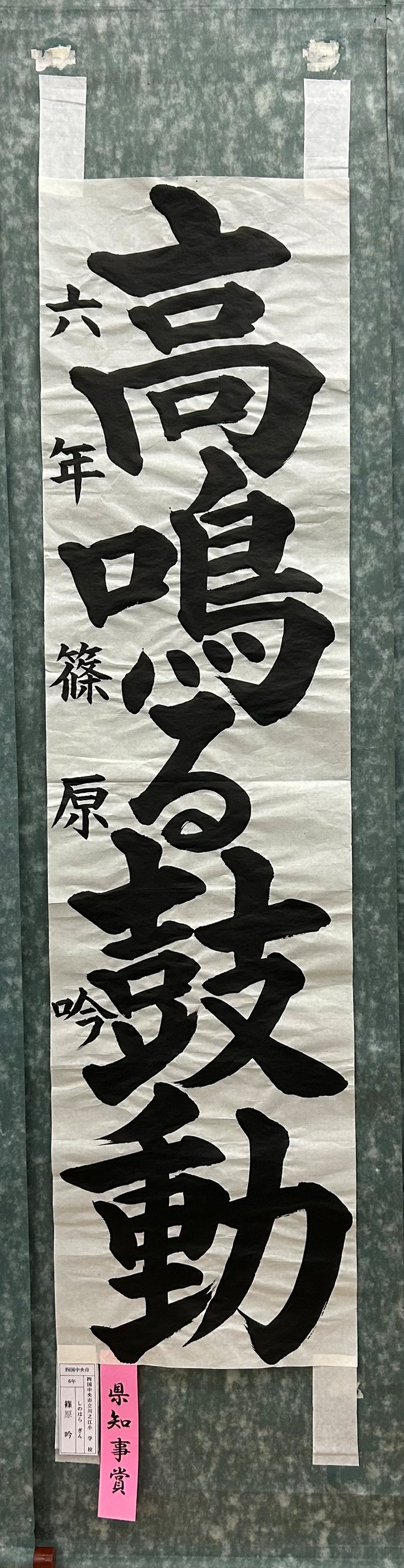 卒園生篠原吟さんが書道で県知事賞を受賞しました。おめでとうございます!